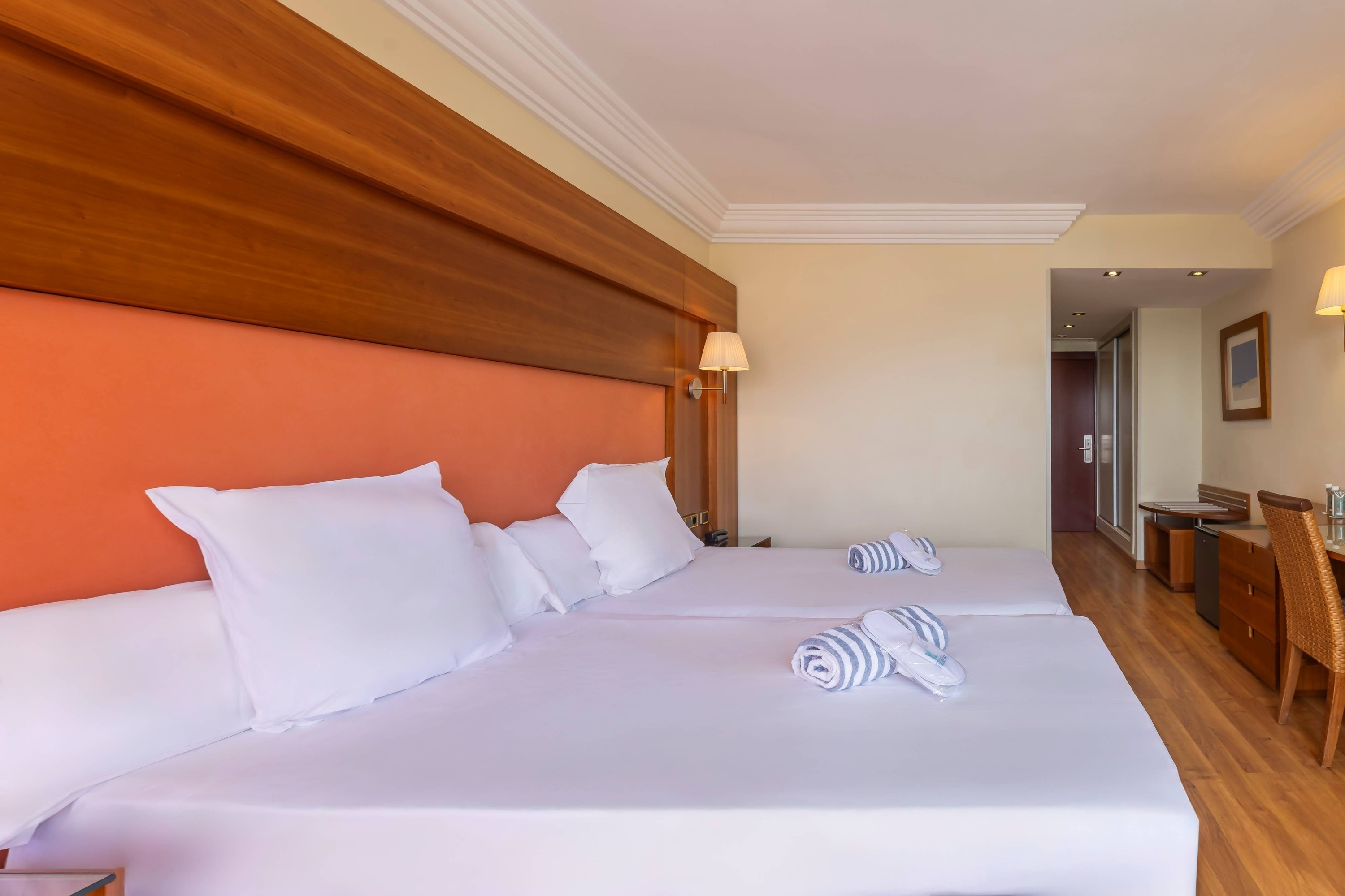 ( 2 Adultos )Habitación superior con dos camas individuales y un sofá cama, aire acondicionado, TV, Wifi de alta velocidad, minibar, baño completo con bañera, amenities y balcón o ventanal con vistas al mar.